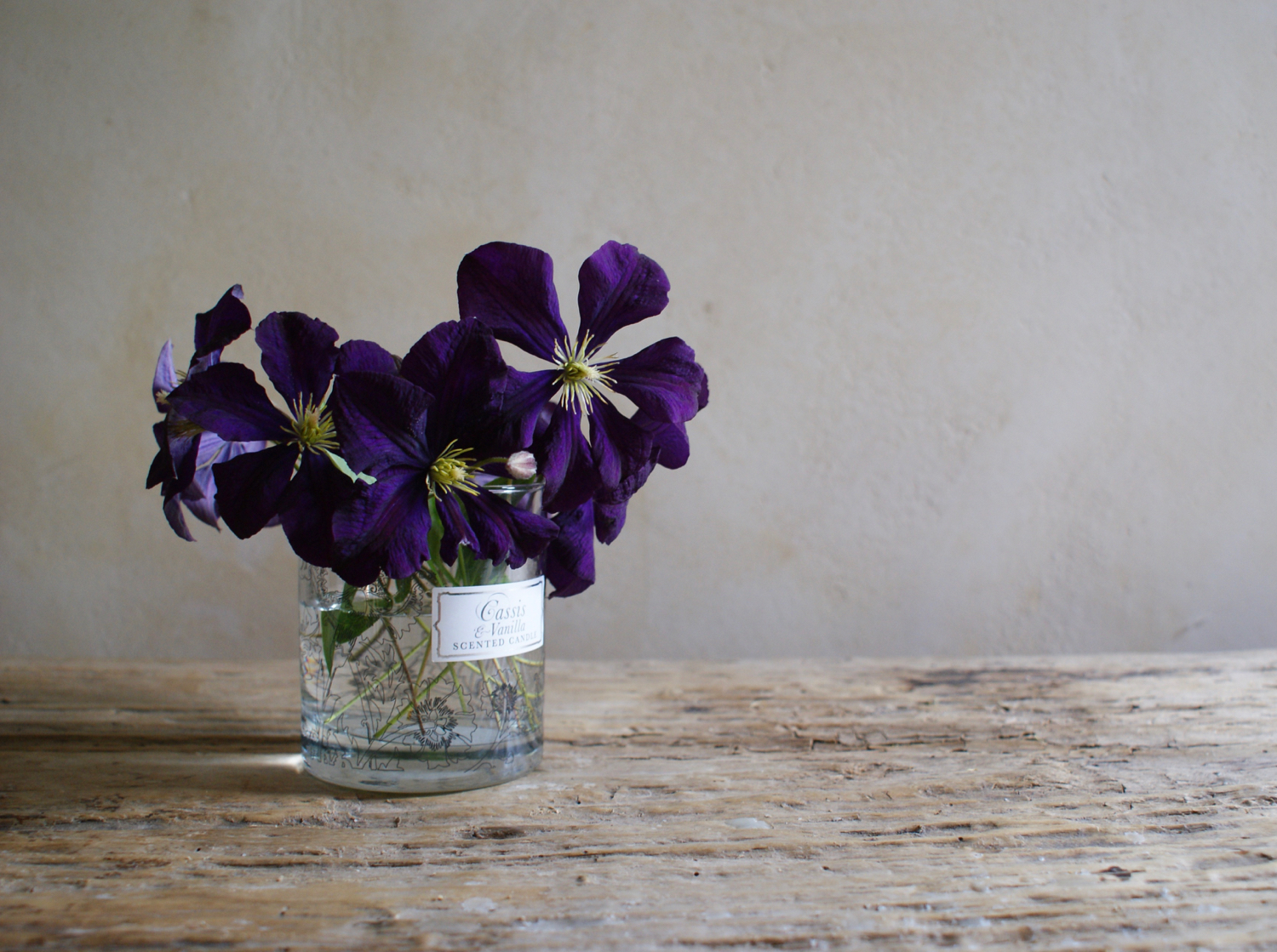 A quirky alternative to a vase, your empty candle vessels can become home to some small wild flowers and pretty botanicals. They can also be filled with soil so some plants can be brought inside too!